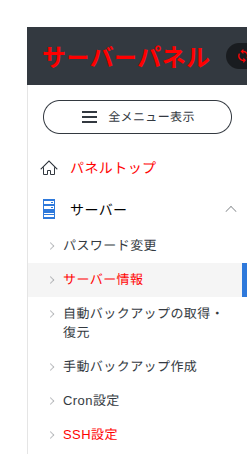 - サーバーパネルの左メニューのSSH設定をクリックします。
